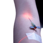 Das Laserlicht wird über einen sterilen Einmal-Lichtleiter direkt in eine Vene am Unterarm eingebracht.